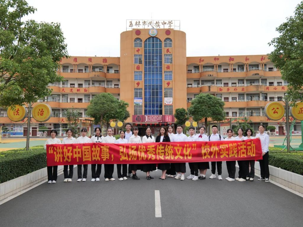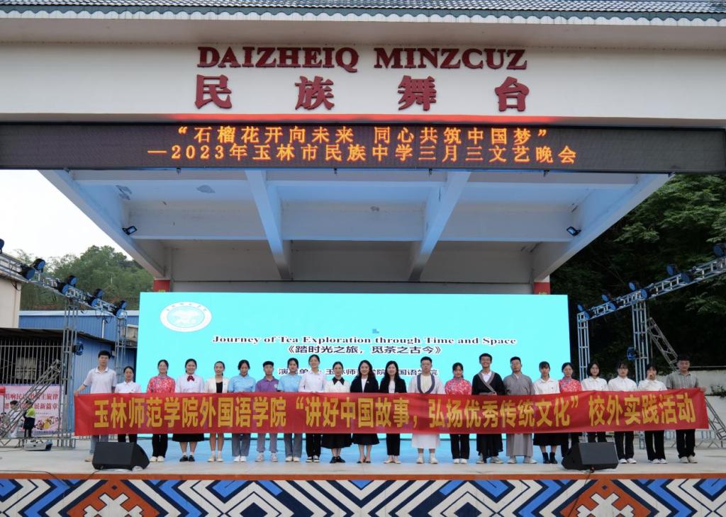 为进一步加强地方高校服务国家战略需求的切实性,提升外语学科服务地方发展需求的有效性,促进我校乡村外语教育实践基地与乡镇中学深度合作,4月19日,我校乡村外语教育实践基地成员带领我校外国语学院英语专业学生赴兴业县山心镇,到基地完美(中国)玉林市民族中学开展“讲好中国故事,弘扬优秀传统文化”专业实践活动,进行原创英文情景剧“踏时光之旅,觅茶之古今”首演。玉林市民族中学郑桂海校长及该校全体师生,外国语学院团委书记、乡村外语教育实践基地主任等4位教师全程参加活动,兴业县政协,山心镇党委、人大等相关部门负责人到场观看并给予高度赞扬。