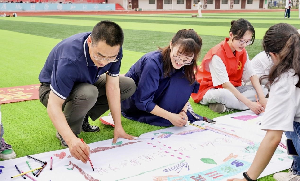 庞伟作动员讲话,介绍壮族“三月三”的由来以及壮乡美食五色糯米饭、壮乡传统服饰、对唱山歌、抛绣球等有关“三月三”的节日文化,让同学们了解壮族优秀传统文化的同时,深深感受中华民族传统文化的博大精深。他希望师生多了解“三月三”的传统历史,将“三月三”传统文化与中华经典古诗词结合传承,在特色的民族活动中培养顽强拼搏、团结协作、乐观向上的精神。