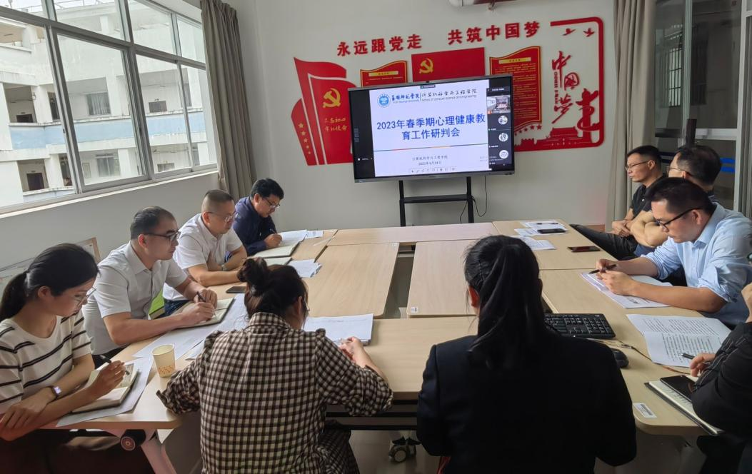 4月24日下午,计算机科学与工程学院于我校东校区厚德楼党员活动室召开2023年春季期心理健康教育工作研判会,会议分线下和线上形式同步进行。该院党委书记方琨、副院长陈佐瓒(主持行政全面工作)、校心理咨询中心黄娇以及该院辅导员、全体班主任参加此次会议。会议由该院党委副书记兼副院长黄潮主持。