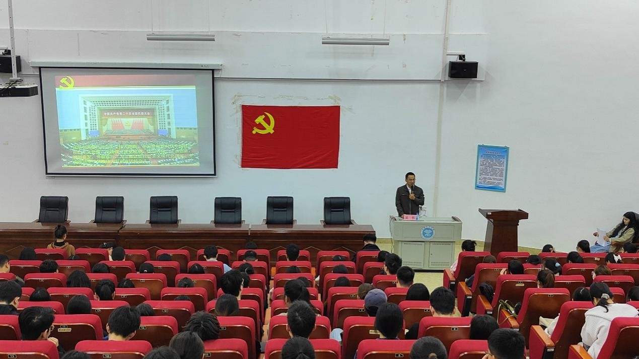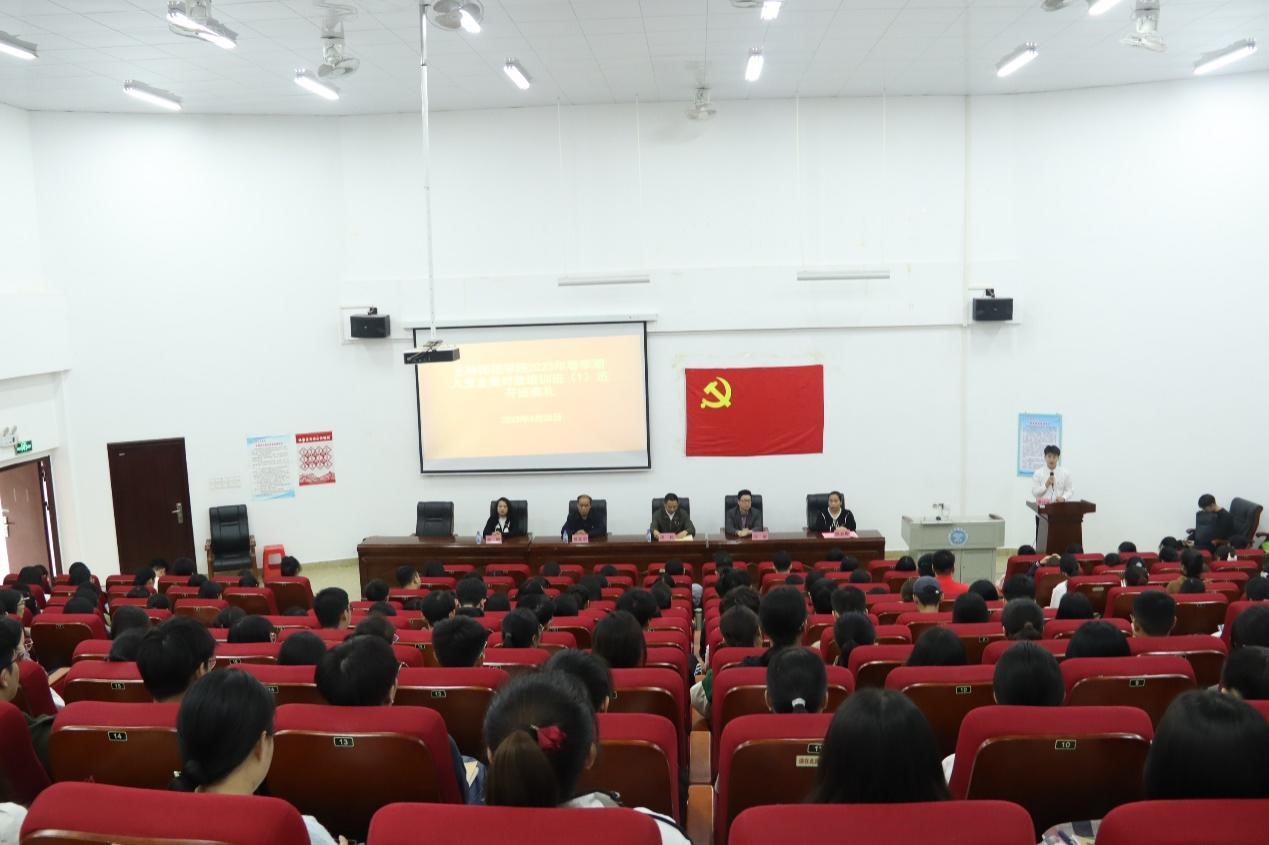 4月25日下午,我校2023年春季期入党发展对象培训班1班开班典礼在东校区至善102顺利举行。文学与传媒学院党委书记邱冠,数学与统计学院党委书记庞伟、党委专职组织员兼培训班班主任陈金梅,外国语学院党委专职组织员曾宪明,美术与设计学院党委专职组织员李婷出席开班典礼,入党发展对象培训班1班全体成员参加此次开班典礼,典礼由陈金梅主持。