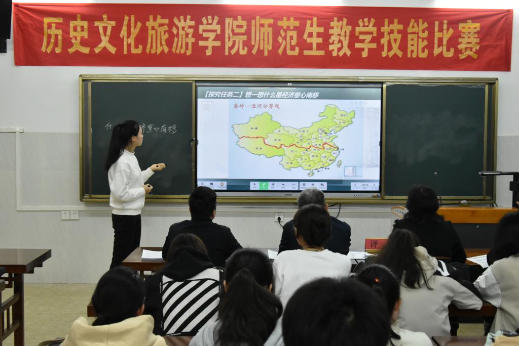 4月25日下午,历史文化旅游学院于我校东校区至善楼四楼悦学堂历史实训室举行2023年师范生教学技能大赛决赛。该院党委副书记兼副院长王世景、副院长唐彰元出席大赛,历史学教研室骨干教师担任评委,历史学专业学生到场观摩比赛。