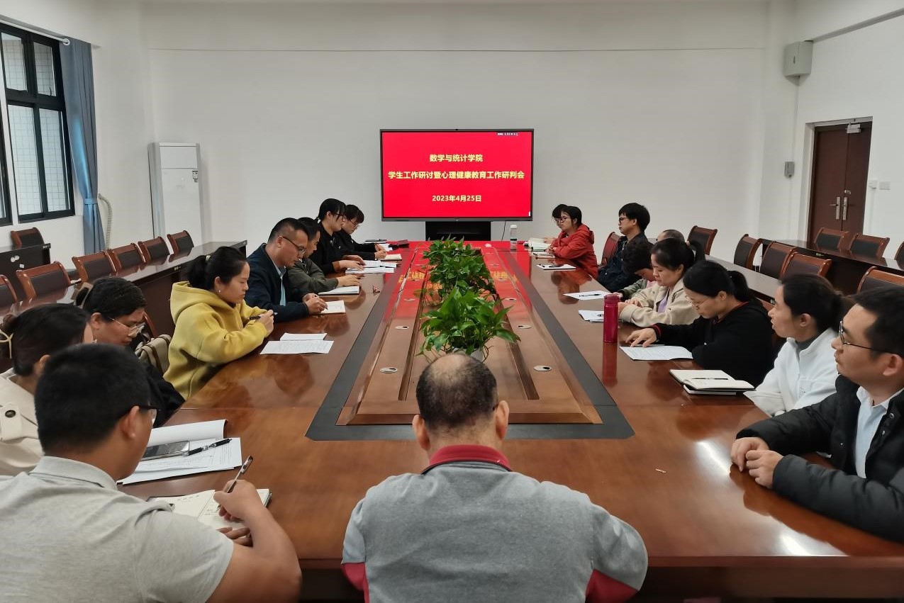 为了进一步分析和研究大学生心理健康教育状况,加强各班的沟通交流,推动学生工作有序开展。数学与统计学院于我校东校区新民楼C408会议室召开学生工作研讨会暨心理健康教育工作研判会。学院党委书记庞伟、副院长(主持全面行政工作)王培、党委副书记李秀英、团委书记、完美(中国)心理中心心理咨询师,各班班主任及辅导员参会。