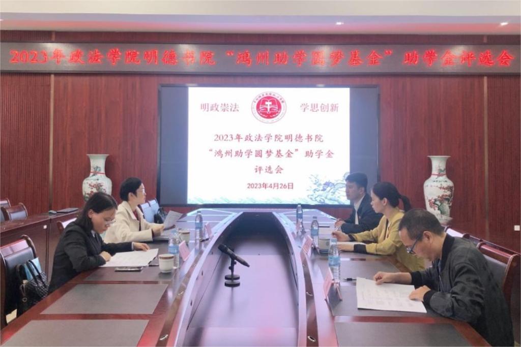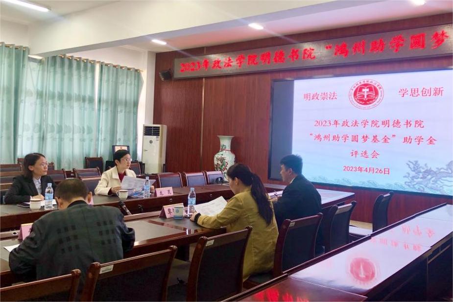 4月26日下午,政法学院于我校东校区明德楼508会议室召开2023年明德书院“鸿州助学圆梦基金”助学金评选会。