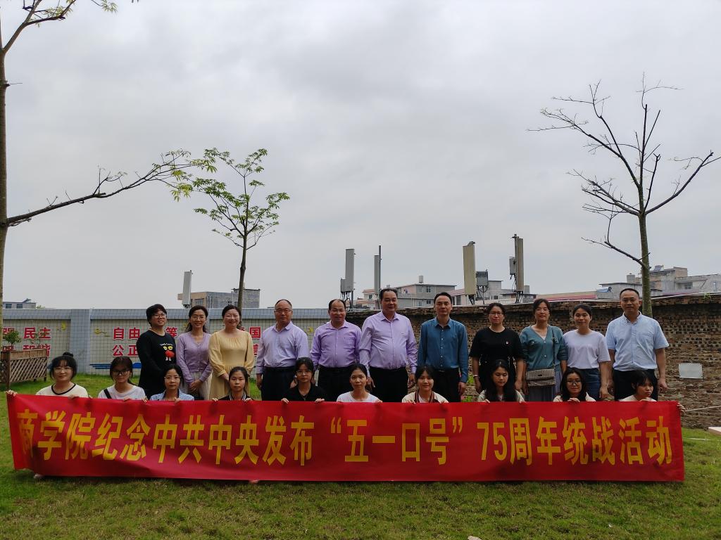 4月27日,商学院在我校东校区梅园共享厨房组织开展纪念中共中央发布“五一口号”75周年统战联谊活动,该院领导班子、党外人士、辅导员、师生代表参加本次活动。