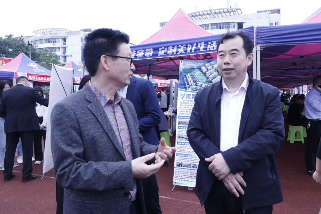 双选会期间,邱冠一行走访各用人单位,与现场招聘的用人单位深入洽谈,了解地方单位的用人需求,积极推荐学院毕业生就业。此外,邱冠还与现场求职的毕业生亲切交流,询问他们的求职意向,为他们提供就业指导建议并鼓励他们积极应聘、勇敢尝试、尽早就业。