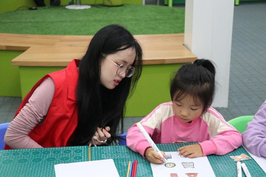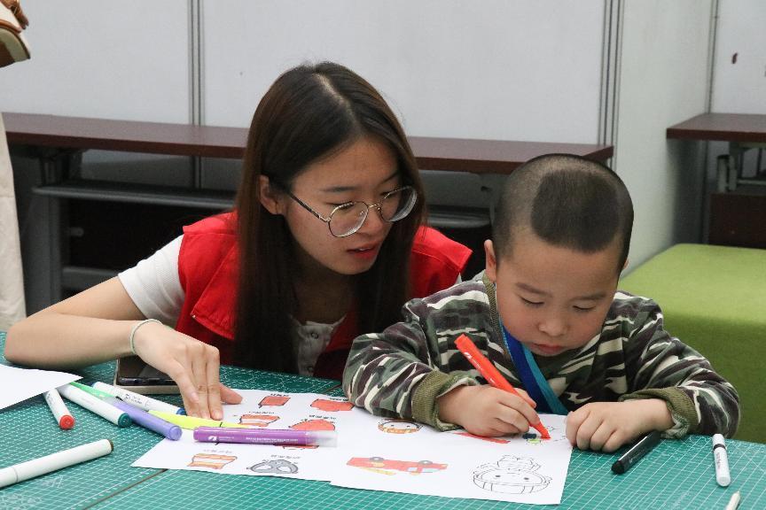 在消防员简笔画涂画活动中,志愿者们带着小读者们充分发挥想象力,为消防员们绘画与上色。小读者们用心勾勒,细心描绘出自己心目中消防员的形象。