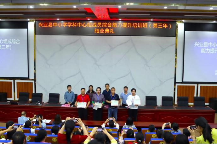 兴业县第二中学教师作为学员代表发言,分享此次培训的学习感受与收获。最后,田海洋宣读了本次培训优秀学员名单,并与出席典礼的领导一起为培训学员颁发证书。