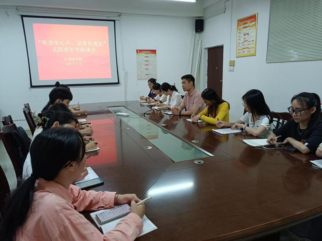 5月4日,外国语学院于我校东校区厚德楼1-306会议室召开“听青年之声,话青年成长”五四青年节座谈会,该院党委书记梁国初,团委书记,辅导员以及全体团委学生干部参加会议。