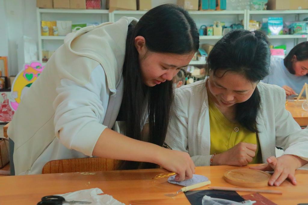 本次活动以“巧手齐相聚,国粹润慧心”为主题。活动中,指导教师介绍了掐丝珐琅的历史、工艺、技法,并通过现场教学展现了传统手工制作的艺术魅力。随后,描图、上胶、掐丝、洗沙、点蓝……在指导教师的帮助下,学员们进行了一次掐丝珐琅画。经过细细描绘,远山、翠竹、清荷、金鱼等极具中国文化风韵的作品诞生在大家的手中。