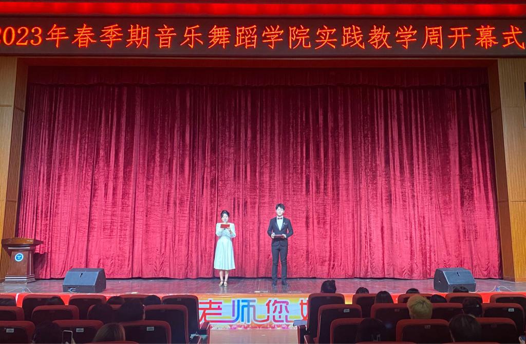 为进一步推进学院应用型人才培育,提高学生艺术实践能力,音乐舞蹈学院于5月15日下午3点在我校东校区大学生活动中心二楼演艺厅举行2023年春季期实践教学周开幕式。学院院长陈力、副院长韦嘉、副院长蒋艳以及全体师生参加此次开幕式。