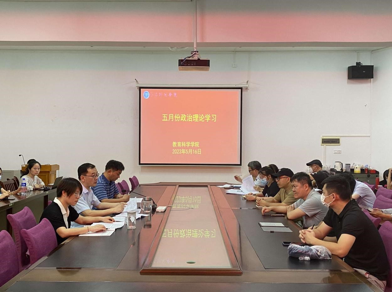 5月16日下午,教育科学学院在我校东校区明德楼学院会议室召开五月份政治理论学习会,重点学习了习近平总书记关于师德师风建设的重要论述。学院领导班子成员以及全体教职工参加会议。