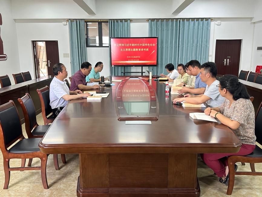 5月18日上午,历史文化旅游学院在东校区至善楼509会议室召开学习贯彻习近平新时代中国特色社会主义思想主题教育读书班学习会,该院领导班子、各支部书记参加本次专题读书班。