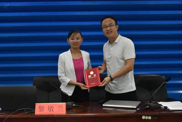 王世景作总结发言,他表示黎敏兰师姐的个人发展规划积极响应了国家发展号召,希望学生们珍惜当前生活,以黎敏兰师姐为精神标杆,积极投身国家建设事业,提高个人素质的同时注重团结协作,以及与他人的沟通交流。随后,他代表学院向黎敏兰颁发聘书,聘请她作为该院创新创业导师。