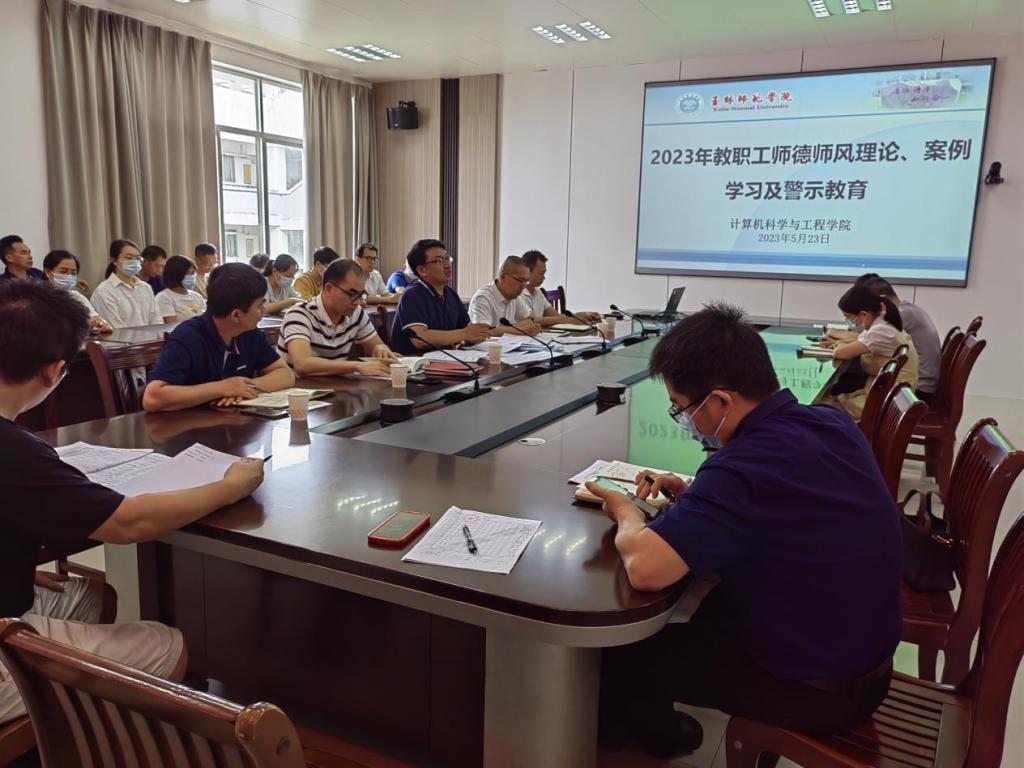 为进一步强化学院教师师德师风建设,规范教师教育教学行为。5月23日下午,计算机科学与工程学院在我校东校区厚德楼2-401教室召开2023年教职工师德师风理论、案例学习及警示教育会。本次会议由该院党委书记方琨主讲,全体教职工参加。
