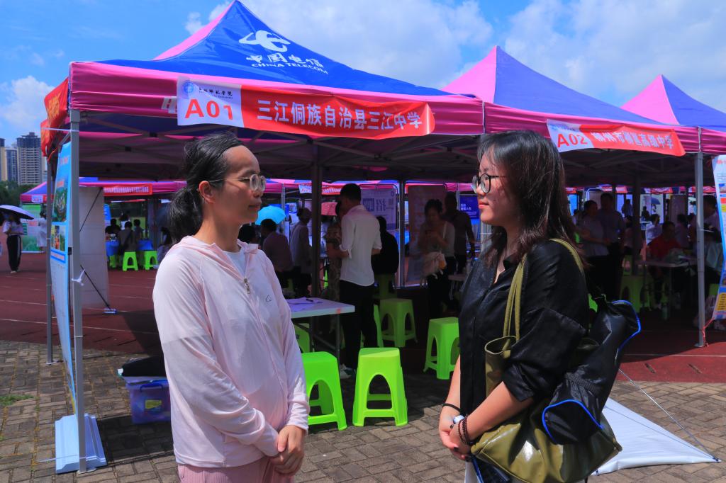 双选会期间,梁丹一行走访各用人单位,与现场招聘的用人单位深入洽谈,了解地方单位的用人需求,积极推荐学院毕业生就业。此外,梁丹还与现场求职的毕业生亲切交流,询问她们的求职意向,为他们提供就业指导建议并鼓励他们积极应聘、勇敢尝试、尽早就业。