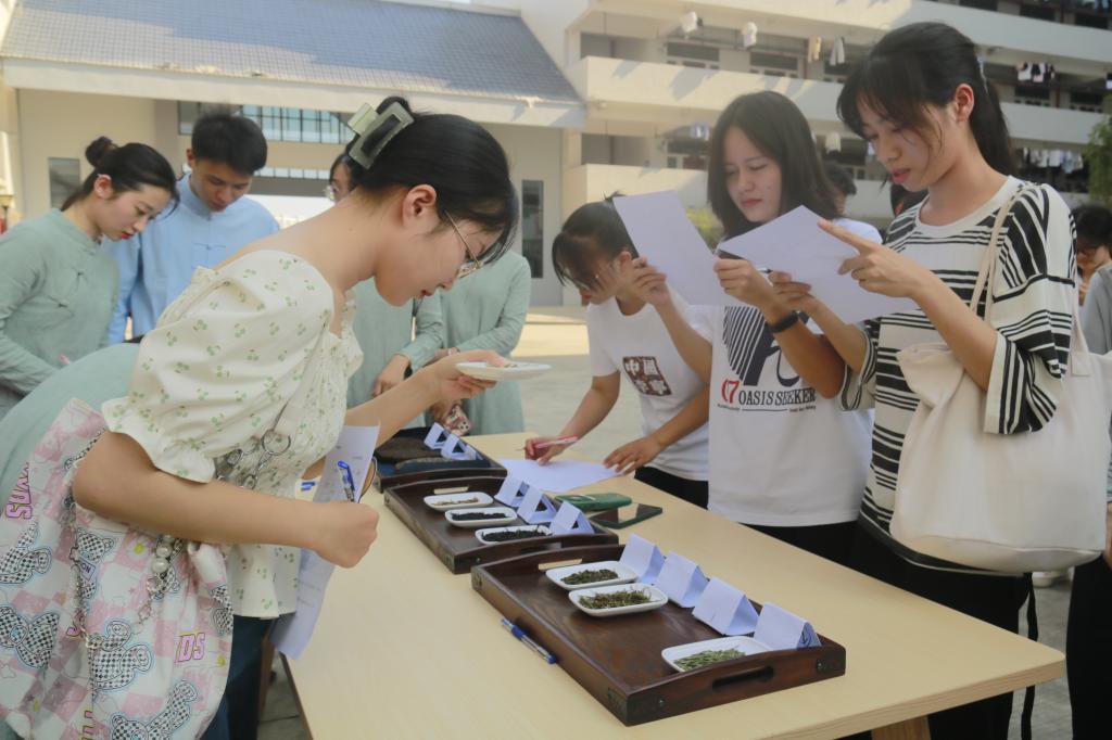 茶艺表演后,我校茶艺指导教师向现场师生介绍品茶识茶的相关知识,并开展了识茶竞赛。现场识茶正确则有机会获得定制旅行茶具一套,师生们跃跃欲试,积极参与到活动之中,现场气氛高涨。
