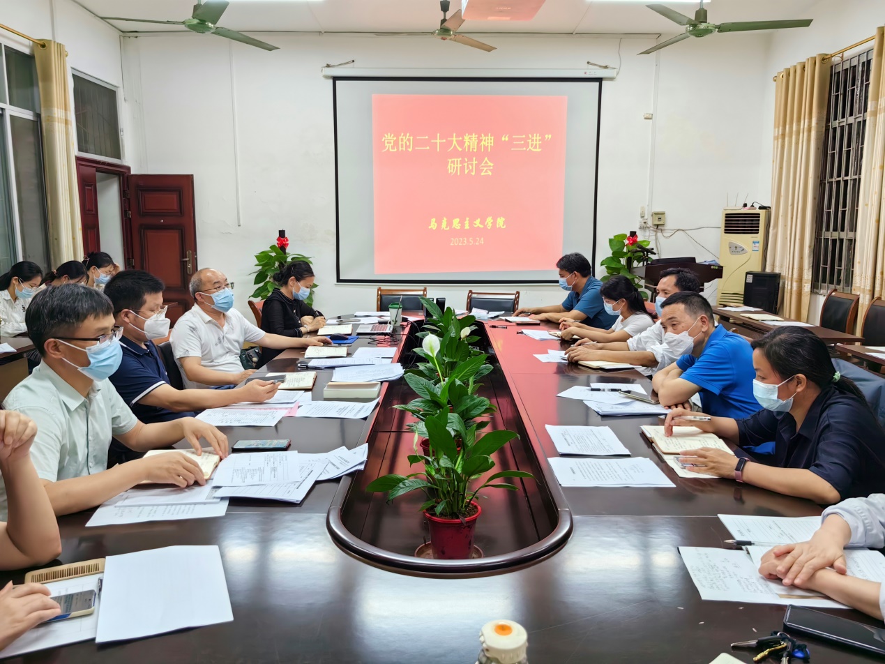 为全面推进党的二十大精神进教材、进课堂、进学生头脑,近日,马克思主义学院在该院会议室召开党的二十大精神“三进”研讨会。