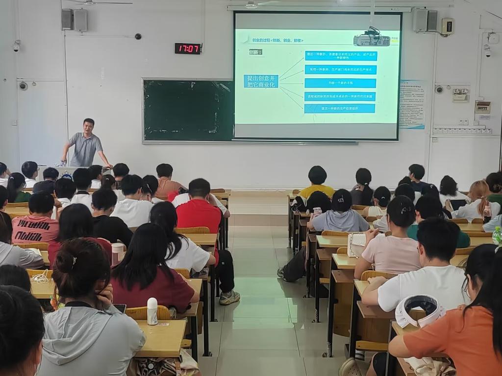随后,周文彬进行大赛辅导培训。他结合近几年大赛的参赛要求和项目情况等内容进行讲解,让学生了解“互联网+”大赛,并以就业生活为引子,让学生认识到创新创业的重要性。与此同时,,他对“创新、创业、创收”做出解释,并对如何形成商业BP文案进行案例展示。最后,参会人员进行互动交流。