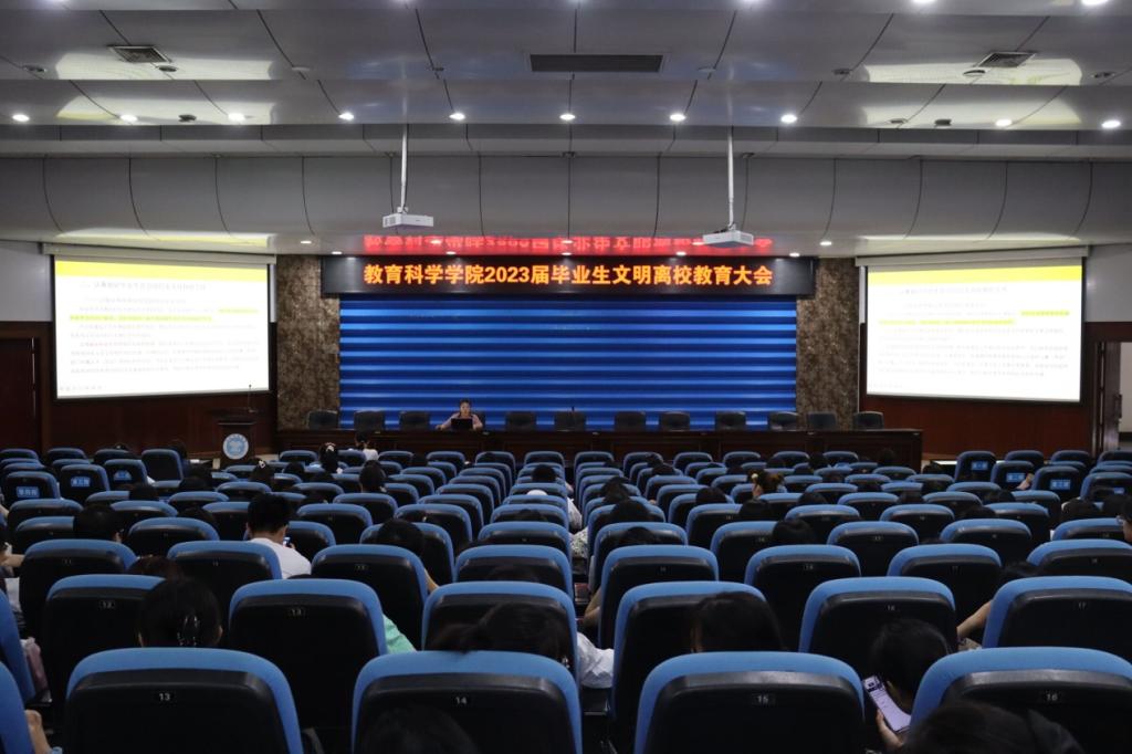 为切实做好2023届毕业生离校教育工作,营造健康有序、文明和谐的毕业季氛围,保障毕业学生安全离校、暖心离校,5月31日和6月5日,教育科学学院分别在西、东校区召开了2023届毕业生文明离校教育大会。会议由该院党委副书记李尚芳主持,辅导员以及该院2023届全体毕业生参加会议。