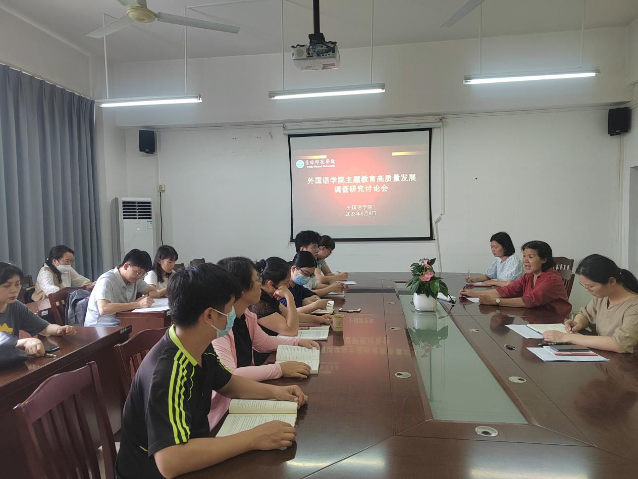 6月8日上午,外国语学院于东校区厚德楼1-306会议室召开主题教育高质量发展调查研究讨论会,该院党委委员以及班主任参加会议,该院熊惠副院长主持会议。