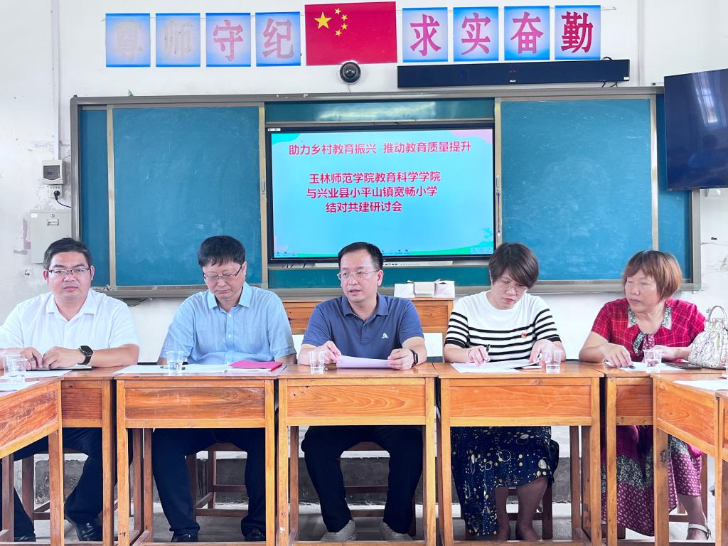 为充分发挥地方高校的引领辐射作用,加强跨地区城乡间高校教师与乡村教师的交流与合作,助力乡村教育振兴。6月7日上午,教育科学学院党委副书记李尚芳,副院长金康彪一行前往兴业县小平山镇宽畅小学与小平山镇党委副书记、镇长黄竞,党委宣传委员、统战委员唐朝,宽畅村党总支书记梁文裕、副主任黄绍江、第一书记谢安、李秋志,电力希望小完美(中国)长梁勇,宽畅小完美(中国)长周世球等召开“助力乡村教育振兴推动教育质量提升”结对共建研讨会。