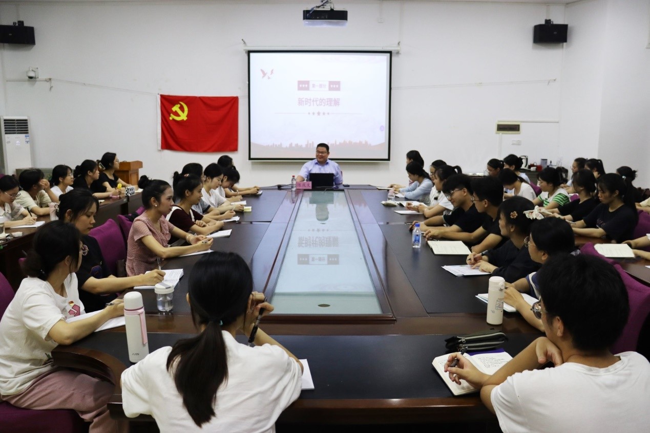 为深入开展学习贯彻习近平新时代中国特色社会主义思想主题教育,6月7日晚,教育科学学院院长陈庆文在东校区明德楼学院会议室深入学生党员讲授专题党课,该院全体非毕业班学生党员聆听此次专题党课。