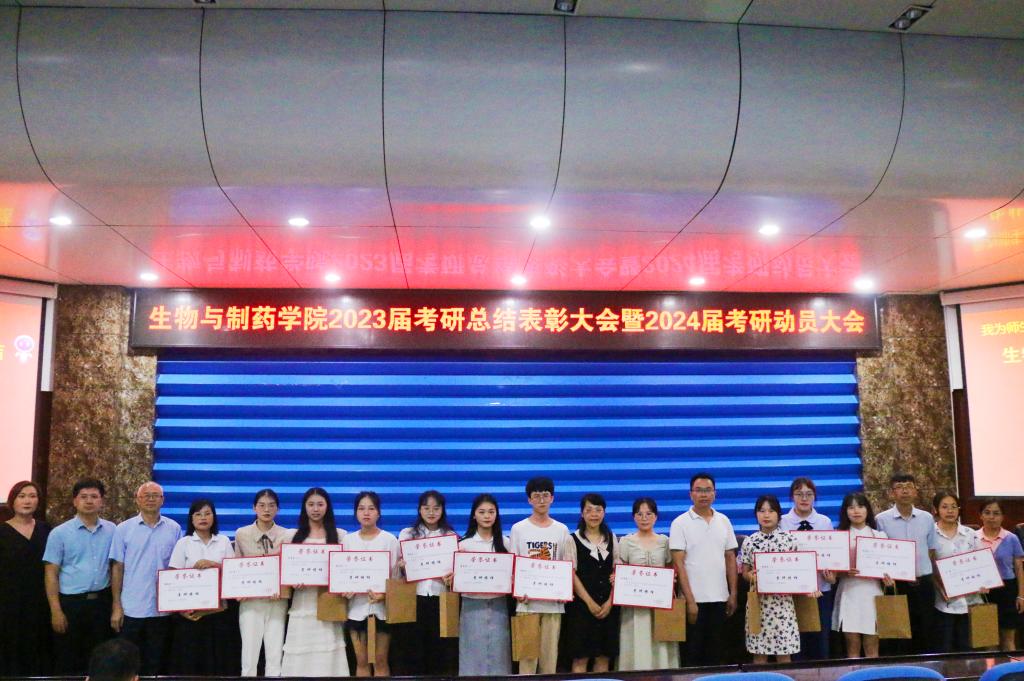 6月8日下午,生物与制药学院于我校东校区学术报告厅召开2023届毕业生考研表彰大会暨2024届毕业生考研动员大会。学院领导班子成员、班主任代表、辅导员、2023届考研毕业生代表以及2024届毕业生参加此次大会。大会由该院党委副书记兼副院长蒋德旗主持。