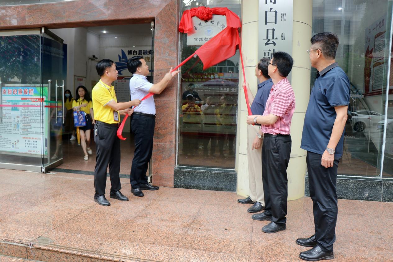 座谈会后,双方签订合作协议,徐一周与沈俊雨共同为博白县融媒体中心实践教学基地揭牌。