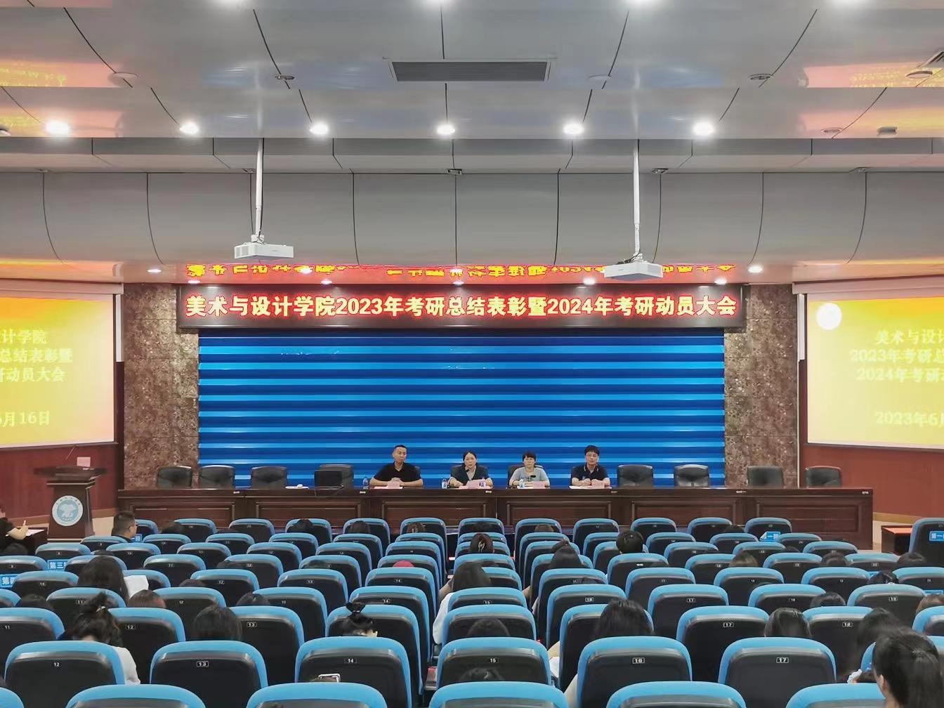 为进一步加强学风建设、培树考研先进典型,凝聚榜样力量,切实提高学生研究生考取率,6月16日上午,美术与设计学院于我校东校区学术报告厅召开2023年考研总结表彰暨2024年考研动员大会。学院党委书记黄培英、副书记严耀燕、教师代表、辅导员、各年级学生代表参加,会议由严耀燕主持。