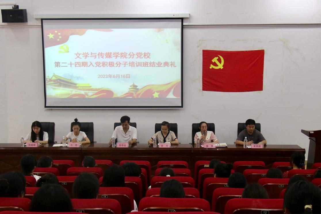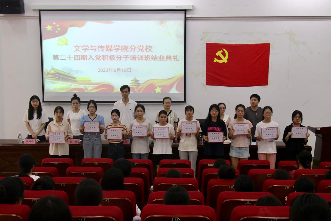 6月16日中午,文学与传媒学院第二十四期入党积极分子培训班结业典礼于我校东校区至善楼102教室举行。学院党委副书记梁丹出席典礼,培训班班主任、各学生党支部书记以及第二十四期入党积极分子参加典礼,本次典礼由该院团委书记秦爽主持。