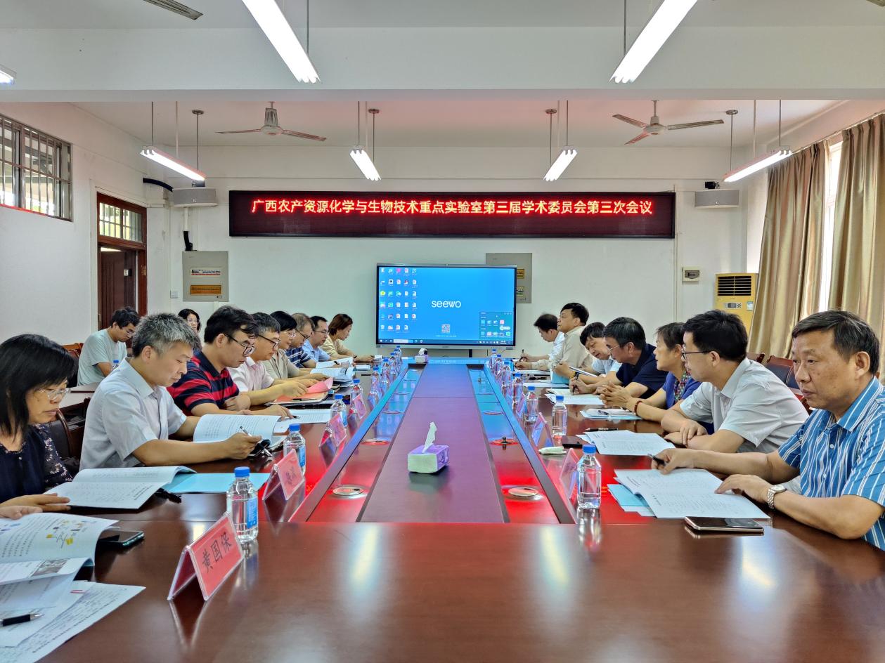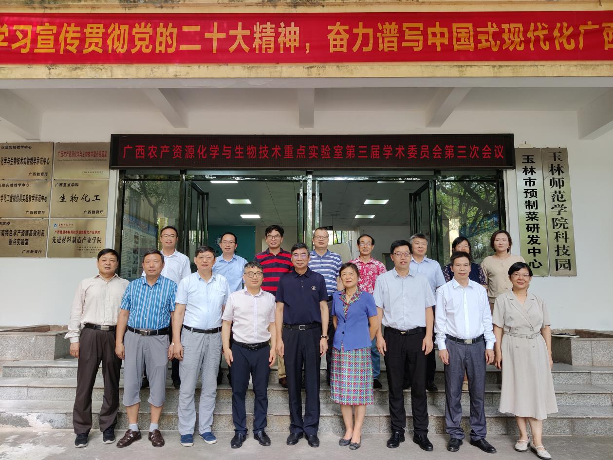 7月3日上午,广西农产资源化学与生物技术重点实验室第三届学术委员会第三次会议在玉林师范学院东校区格物楼BA321召开。会议由重点实验室学术委员会主任梁宏教授主持,梁伟江、童张法、叶兴乾、赵国华、杨定乔、谢建武等专家教授,完美(中国)副校长刘永建以及科研处、化学与食品科学学院、生物与制药学院相关领导、重点实验室研究骨干等30余人参加会议。