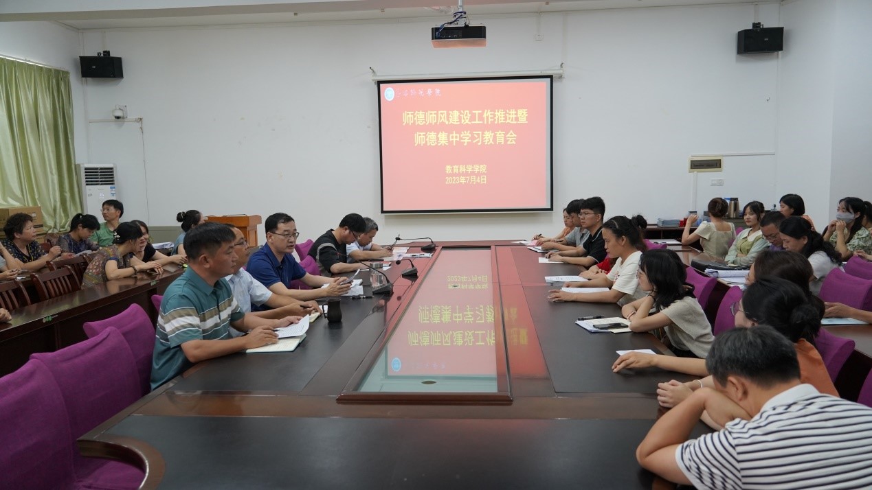 7月4日上午,教育科学学院于明德楼310会议室召开师德师风建设工作推进暨师德集中学习教育会,该院领导班子成员、全体教职工参加此次学习教育会。会议由学院党委书记崔海波主持。