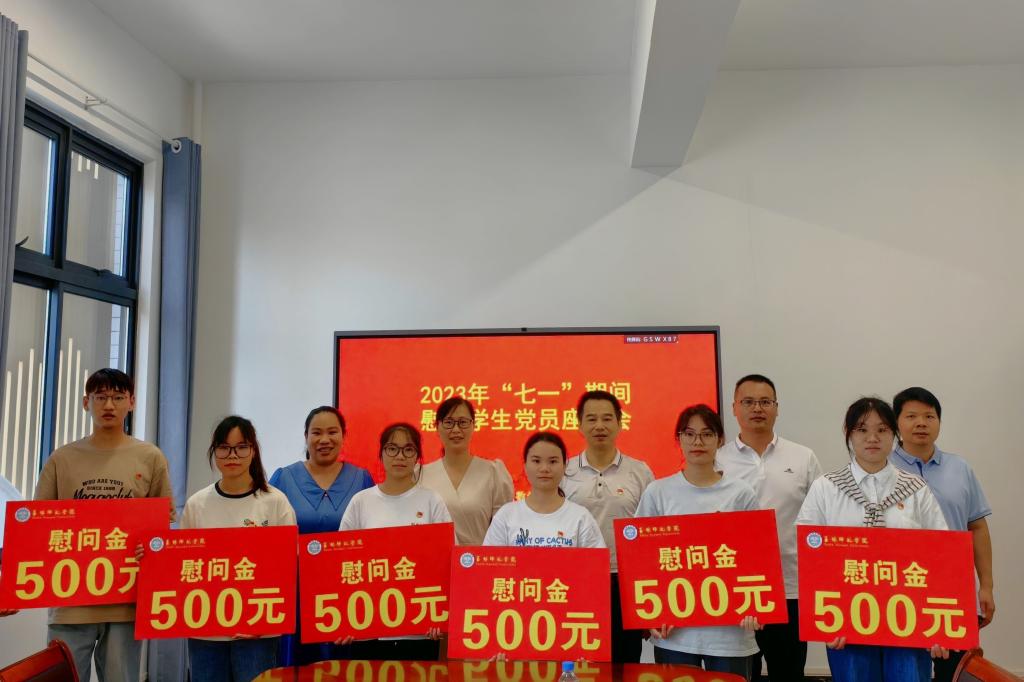会上,庞伟亲切询问了每一位学生党员的生活情况和学习情况,鼓励他们努力学习,自强不息,并对他们提出希望,一是要加强政治学习和专业学习,提高理论素养和专业素养;二是要牢记党员身份,遵纪守法,以身作则,率先垂范;三是要掌握真本领,注重实践,敢挑大梁。随后,学院领导为学生党员送上慰问金。