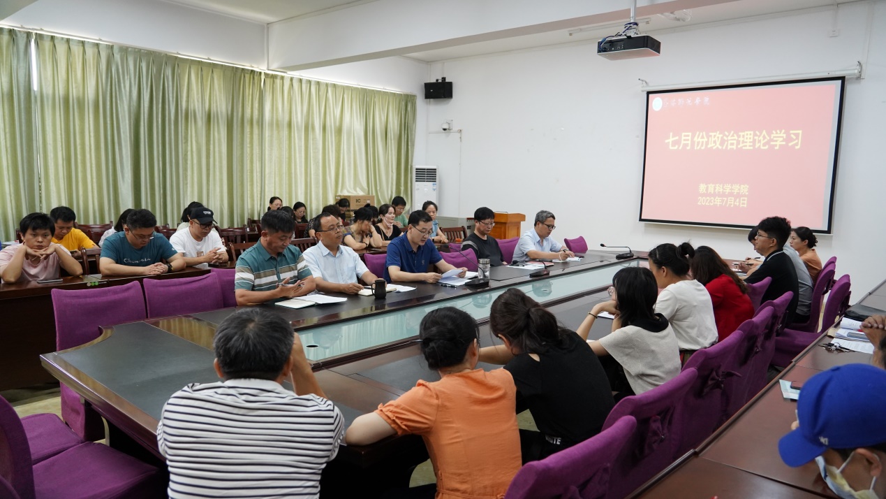 7月4日上午,教育科学学院于明德楼310会议室召开七月份政治理论学习会,学习习近平总书记在文化传承发展座谈会上的重要讲话精神。学院领导班子成员,全体教职工参加此次学习会,学习会由学院党委书记崔海波主持。