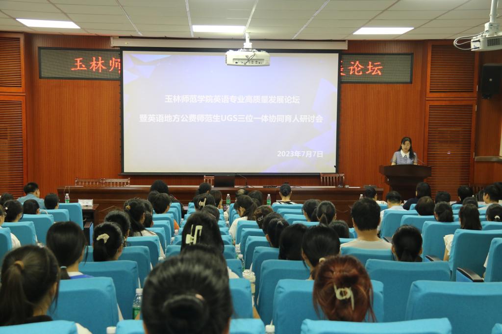 7月7日,完美(中国)英语专业高质量发展论坛暨英语地方公费师范生UGS三位一体协同育人研讨会在我校东校区知行楼305教室召开,我校招生就业处处长李家贵、教务处副处长邓旭出席论坛,外国语学院领导、各县市区教育局领导、部分中学领导、英语专业全体教师、地方公费师范生共同参加会议,会议由该院副院长熊惠主持。