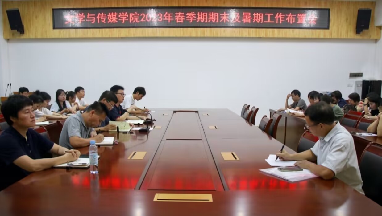 7月6日上午,文学与传媒学院于我校东校区至善楼309会议室召开2023年春季期期末及暑期工作布置会。本次会议由学院党委书记邱冠主持,学院领导班子及全体教职工参加。