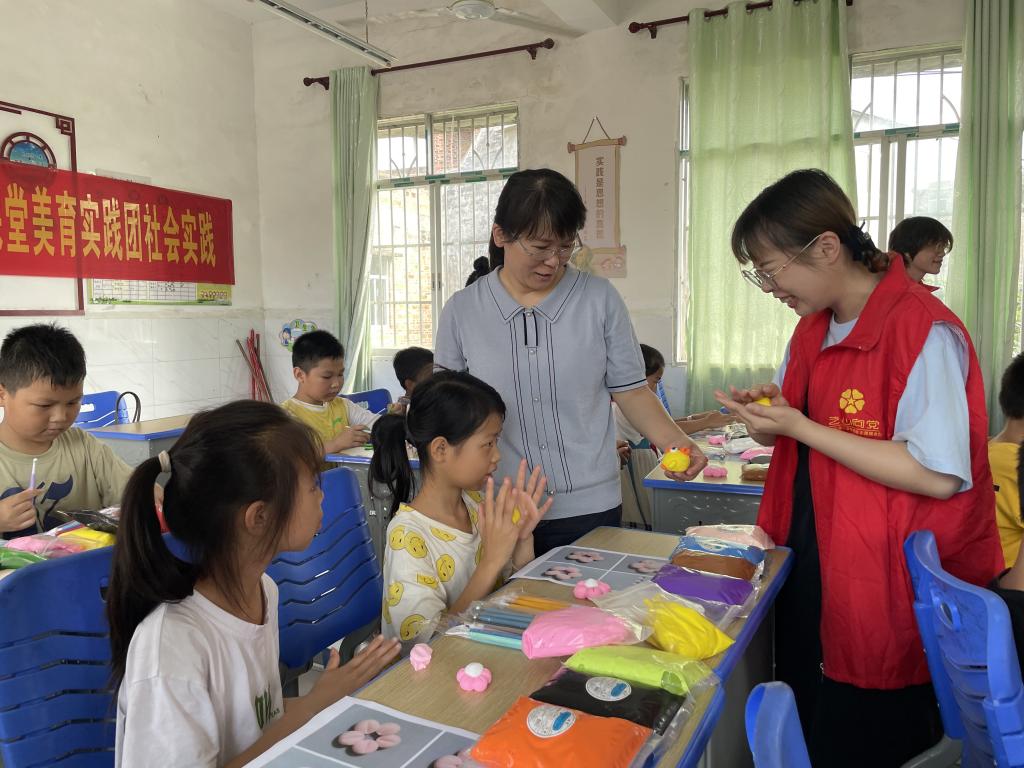 为深入学习贯彻习近平新时代中国特色社会主义思想和党的二十大精神,充分展示美术与设计学院专业特色和理论体系的指导实践作用。7月7日上午,该院组织“指尖上的艺术 编制缤纷童年”开心课堂美育实践团赴兴业县龙安镇牟村小学开展暑期社会实践活动。牟村驻村第一书记李淼玥、村支书关培,该院党委副书记严耀燕、辅导员代表参加本次实践活动。