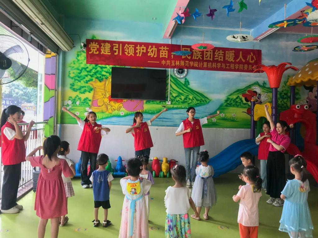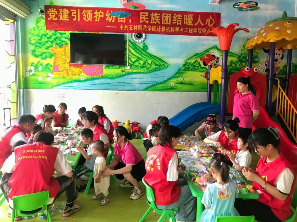 为深入开展民族团结教育,引导学生党员在社会课堂中“受教育、长才干、作贡献”,7月7日,计算机科学与工程学院奔腾+石榴籽党员志愿服务团组织学生党员志愿者赴玉林市童康儿童康复中心开展关爱特殊儿童社会实践活动。该院专职组织员、辅导员、学生党员参加活动。