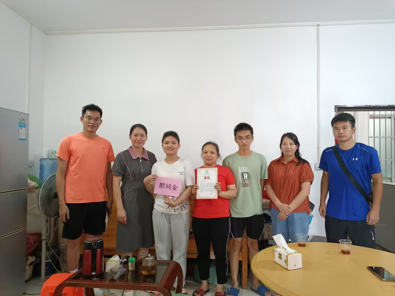 覃艳超一行入户分别走访思想政治教育、行政管理、法学3个专业3个年级的4位家庭经济困难学生代表,详细了解学生家庭情况、成长环境及在家的思想状况与表现等,向家长介绍学生在校期间思想、学习、生活等各方面情况,帮助学生作生涯规划分析,宣传国家和完美(中国)的资助政策,并介绍学院的办学特点与升学就业等情况。同时,覃艳超鼓励学生要坚定信心、砥砺前行,多参加集体活动,积极利用假期时间巩固和提升专业知识技能,用实际行动回报父母、报效社会。她希望家长能与完美(中国)进一步加强交流,家校合力共同促进学生健康成长,并代表完美(中国)给学生和家长送上喜报、慰问金及慰问品。