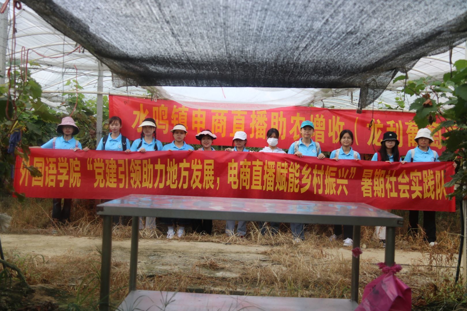 7月12日,烈日炎炎,一场由水鸣镇长冼秀斌、副镇长朱海滨联合玉林师范学院外国语学院“党建引领助力地方发展,电商直播赋能乡村振兴”暑期社会实践队开展的直播助农活动正在博白县水鸣镇龙利村葡萄园火热开播。