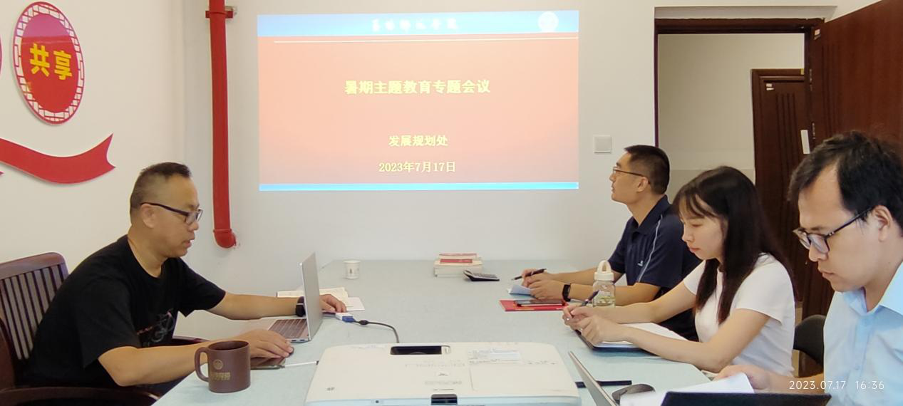 7月17日下午,发展规划处在新民楼A301会议室召开暑期主题教育专题会议,部署暑期主题教育工作,会议由高茂兵处长主持。