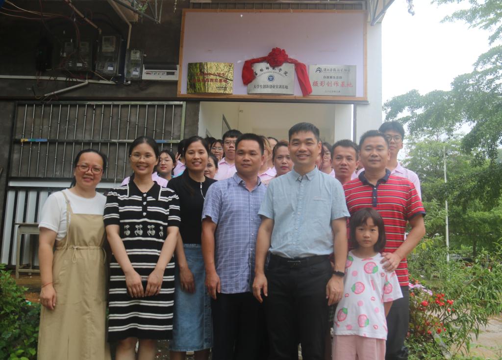 为实施大学生社区实践计划,让大学生走进社会基层,了解社会实际,服务人民群众,增强时代责任感,进一步落实实践育人,7月19日上午,外国语学院与白面麓生态园建立大学生创新创业实训基地,双方举行揭牌仪式。仪式邀请了博白县水鸣镇副镇长朱海滨,白面麓生态园负责人冯李明。外国语学院党委书记梁国初,团委书记、辅导员以及该院社会实践队成员参加活动。