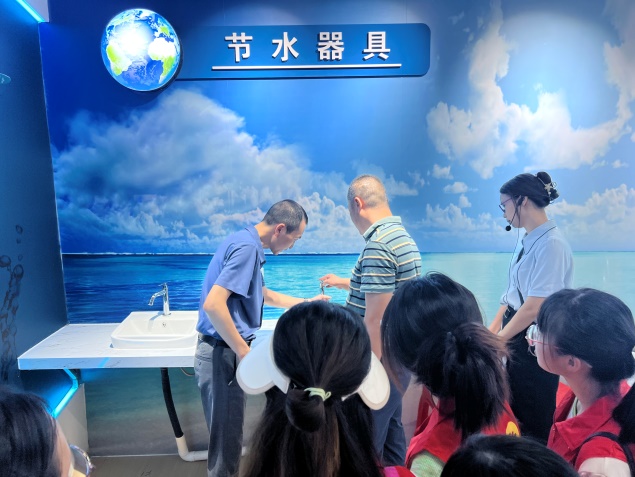 在节水教育基地,讲解员详细为师生们介绍了博白水文水情的建设历史、发展历程,重点介绍了博白目前工业节水、农业节水、城镇节水等重要措施。通过实物展厅的展示,师生对水利建设管理器具、节水器具实物、生活节水器具有了更深的感官了解。