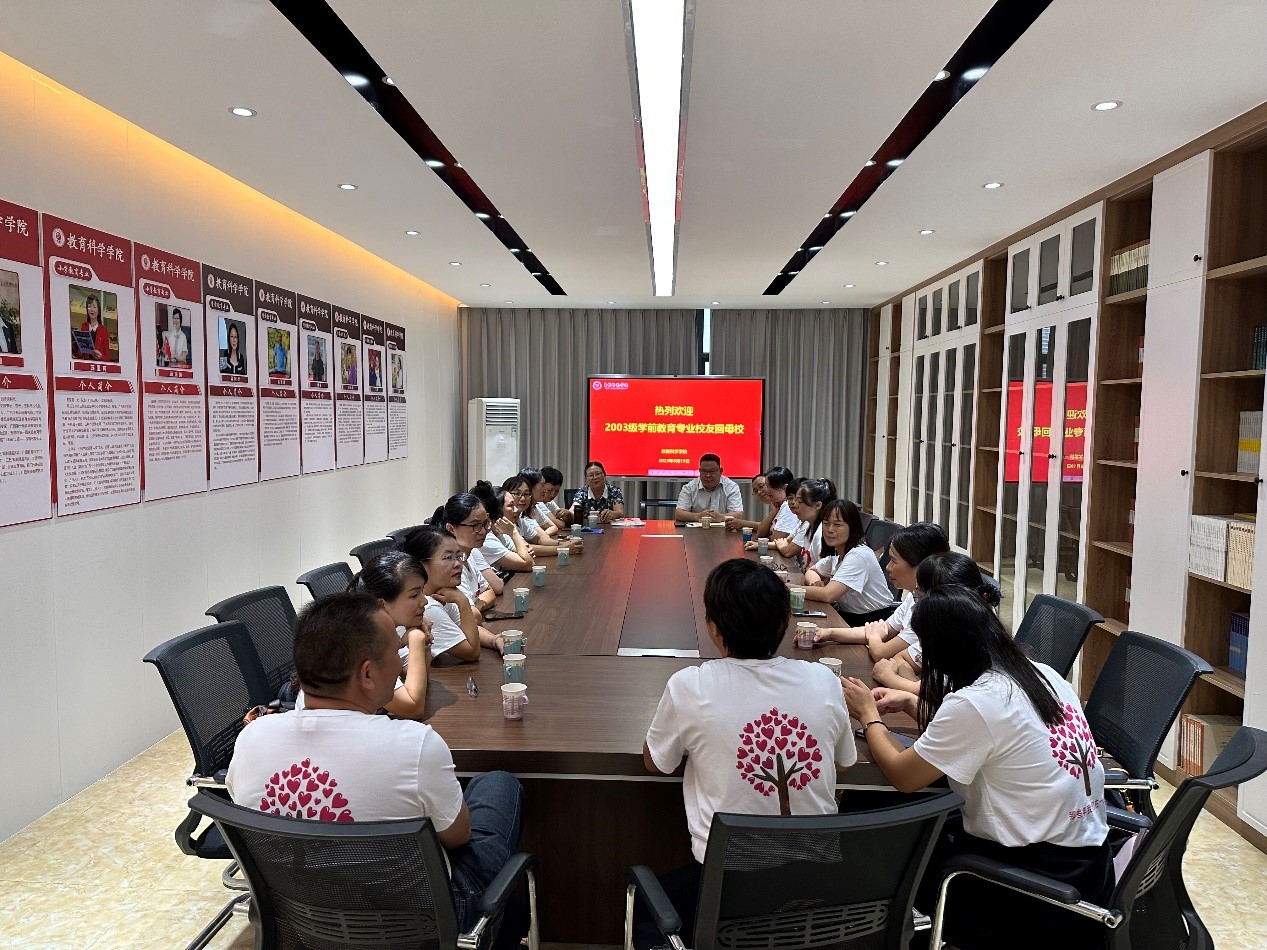 8月19日,教育科学学院在我校东校区明德楼会议室召开毕业二十周年校友座谈会,该院院长陈庆文,副院长谢清理,教师教育学院院长梁钊华,2003级学前教育专业班主任以及回校校友参加此次座谈会。