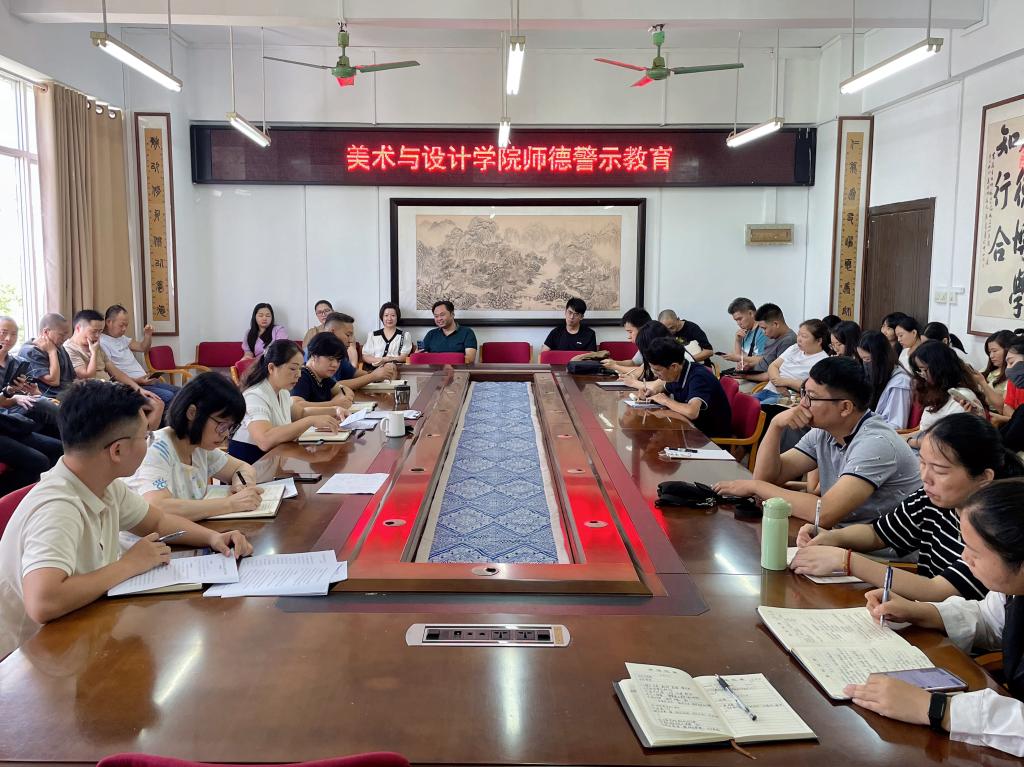 为进一步加强师德师风建设,营造风清气正的育人环境,9月1日,美术与设计学院于我校东校区博学楼3-407会议室召开师德警示教育会。该院党委书记黄培英、副院长邱冬梅,以及全体教职工参加本次会议,会议由党委书记黄培英主持。