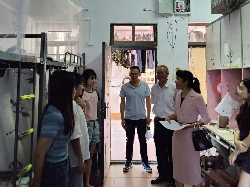 李桂芬详细了解学生关于校园一卡通、空调、校园网、寝室热水、床上用品等宿舍居住相关情况,并希望23级新生多向学院优秀的师兄师姐学习,养成良好的学习生活习惯。