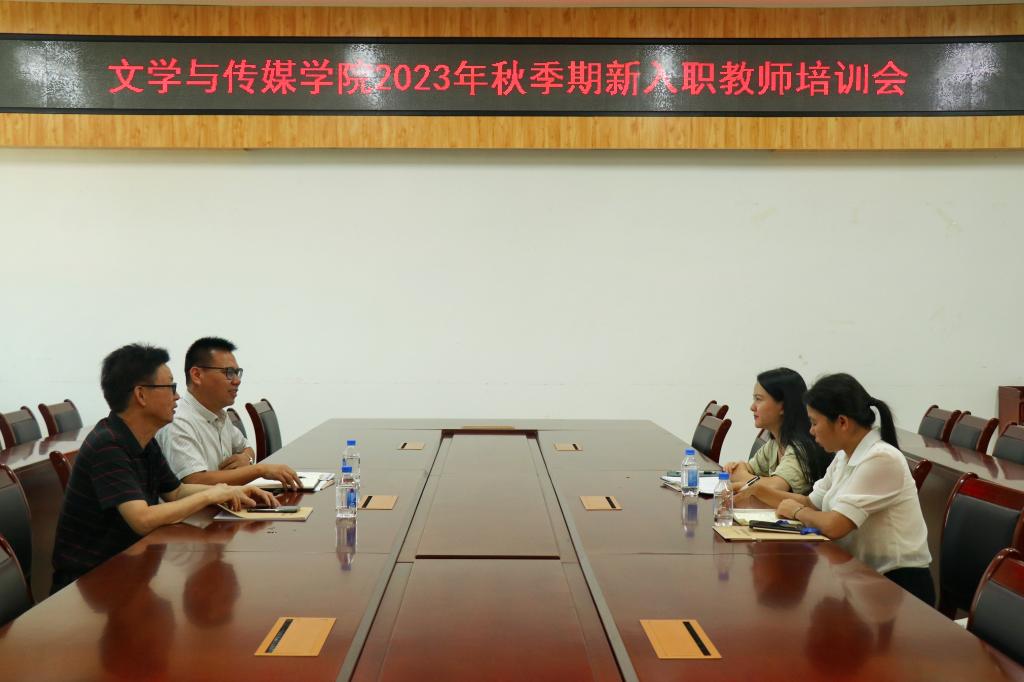 为帮助新入职教师熟悉工作流程,明确工作职责,9月4日,文学与传媒学院于我校东校区至善楼309会议室召开2023年秋季期新入职教师培训会。本次会议由该院党委书记邱冠、副院长郑立峰以及该院两名新入职教师参加。会议由郑立峰主持。