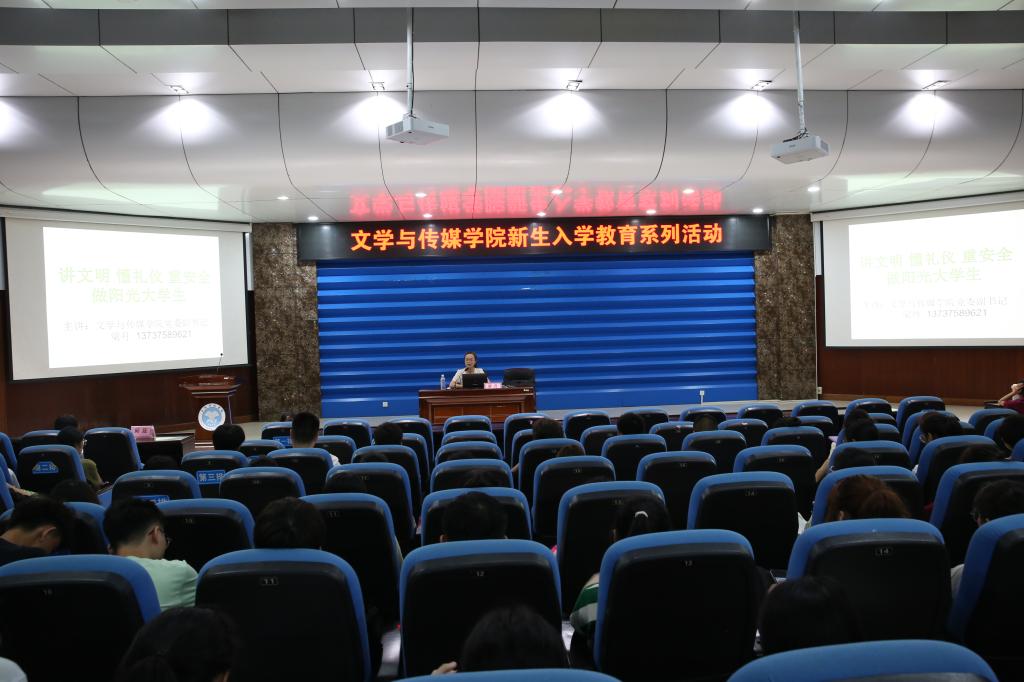 为加强校园文明建设,促使该院新生知礼仪、讲礼仪,营造文明、和谐的育人环境。9月6日上午,文学与传媒学院于我校东校区知行楼学术报告厅举办文明礼仪教育专题讲座。该院党委副书记梁丹、2023级全体新生参与。本次讲座由梁丹主讲。