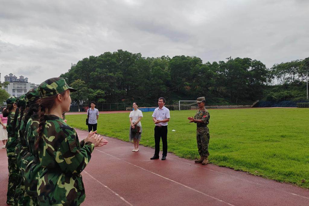 军训现场,何军同教官、参训学生亲切交谈,重点了解军训工作的开展情况和参训学生的身体健康状况,对参训学生昂然的精神风貌给予了赞扬,并对教官们的辛苦付出表示衷心感谢。