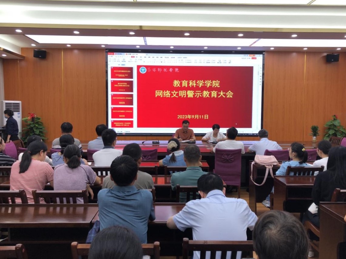 为弘扬时代新风,展现新时代网络文明向上向好精神风貌,切实做好网络文明工作,9月11日上午,教育科学学院于我校东校区明德楼学院会议室召开网络文明警示教育大会,该院领导班子成员,全体教职工参加此次会议,会议由该院党委书记崔海波主持。